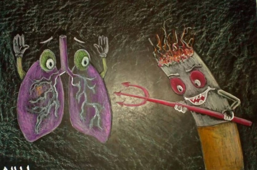 A School Drawing (50x70 cm) showing the harms of smoking.